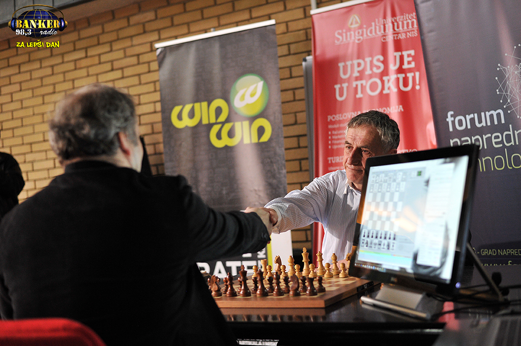 02.03.2018. – Na Univerzitetu Singidunum – Centar u Nišu danas je održan kompjutersko-šahovski spektakl između FIDE velemajstora Miroslava Tošića i hibridnog kompjuterskog sistema AHIL kome je operater bio Prof. Dr Vladan Vučković sa Elektronskog fakulteta koji se već dve decenije bavi kompjuterskim šahom. U Nišu je i ranije bilo ovakvih mečeva, ali ovo je nešto novo. Fokus je bio na primeni naprednih tehnologija, ali bila je to dobra prilika i da se promoviše šah kao igra, kao i razvoj istraživačkog duha u sferi naprednih tehnologija.